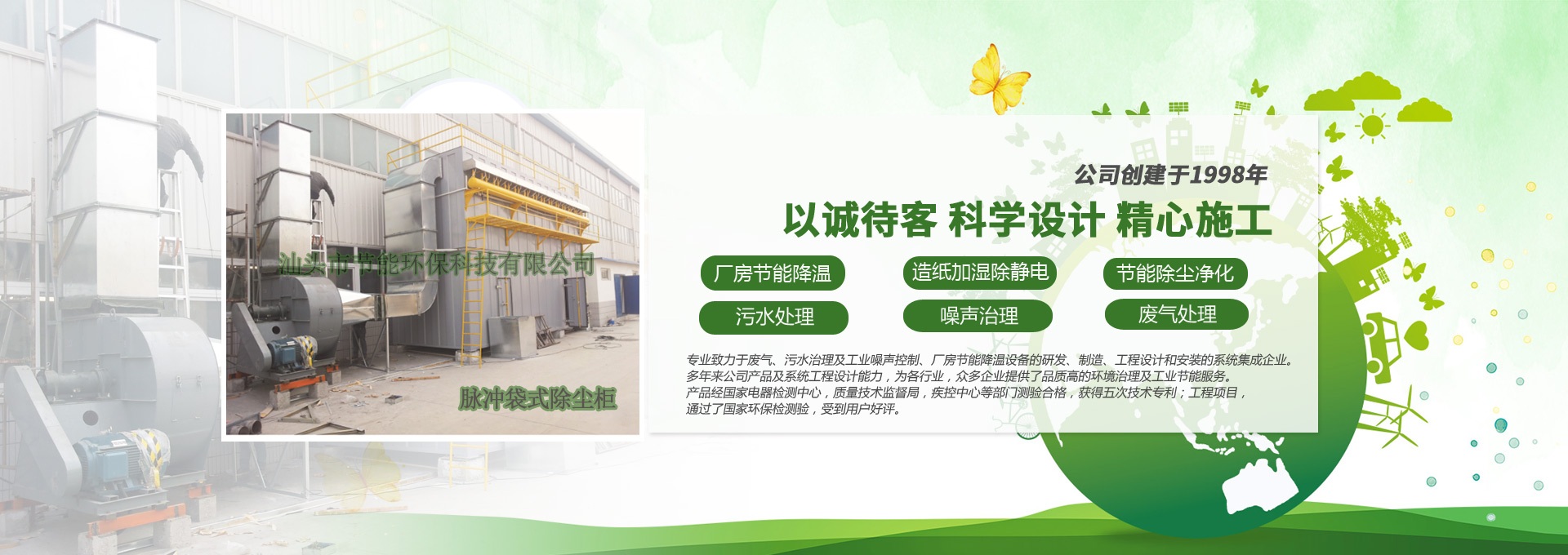 汕頭市節能環??萍加邢薰緞摻ㄓ?998年,是一家專業致力于廢氣、污水、粉塵、噪聲治理,廠房節能降溫設備的研發、制造、工程設計和安裝的系統集成企業。多年來公司產品及系統工程設計能力,為各行業,眾多企業提供了品質高的環境治理及工業節能服務。產品經國家電器檢測中心,質量技術監督局,疾控中心等部門測驗合格,獲得五次技術專利;工程項目通過了國家環保檢驗檢測,受到用戶好評。